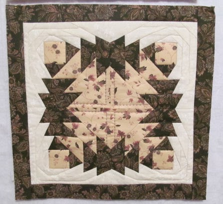 Сразу скажу, что один этот блок ничего не дает. Как сказала одна очень талантливая квилтесса : "кривой" ананас явно не предназначен для соло",т.е. чтобы получить достойную работу таких блоков надо сшить как минимум четыре,чтобы получить вот такой красивый и эффектный топ для подушки (42 см х 42 см)