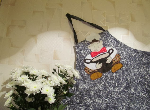 В феврале еще одна дата - 23-е День защитника Отечества. Подарок сыну обязателен... Как обычно, сшила ему фартук... любит постоять у плиты :-)) Готовит всякую морскую живность... довольно вкусно получается.....